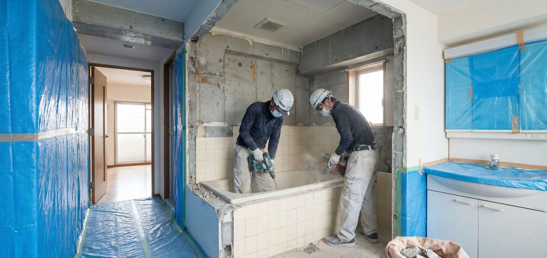 1〜2日目: 既存浴室の解体、廃材搬出